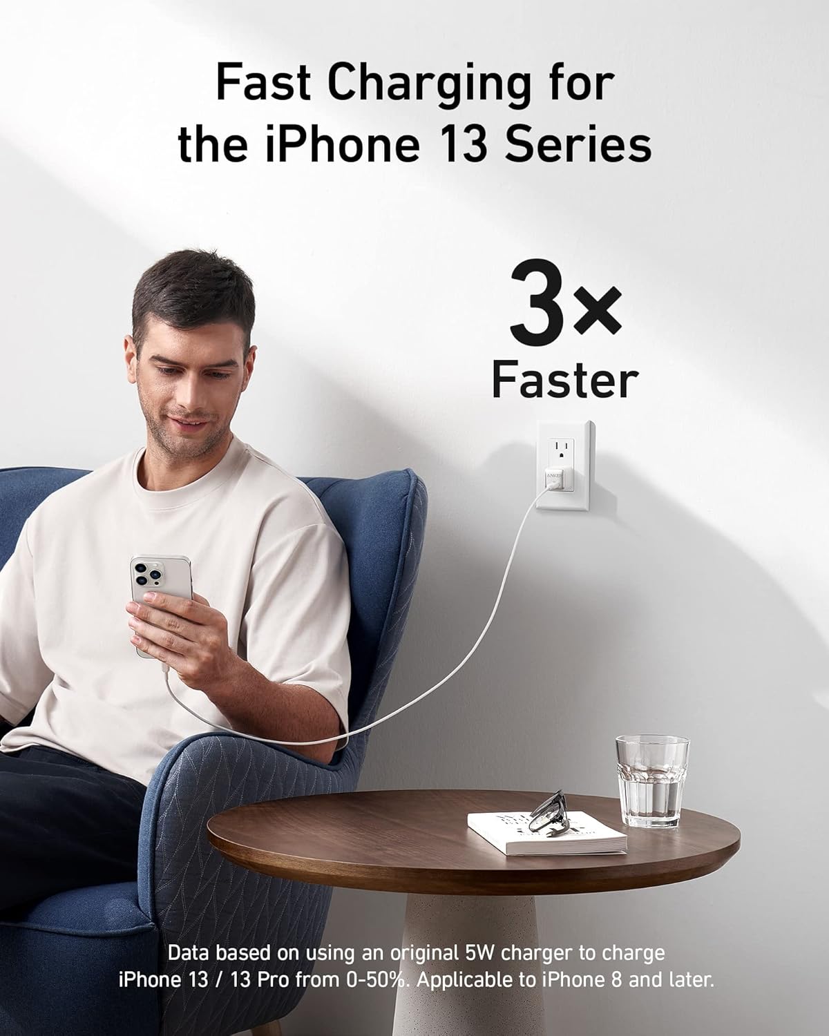 Anker Nano is designed with a 20W output to match the max input of iPhone 13, so you can provide exactly as much power as your iPhone needs.