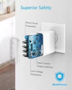 Certified Safe: Anker’s MultiProtect safety system ensures complete protection for you and your devices.