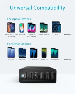 • Ultra Powerful: 6 ports pump out 60 watts of power, enabling simultaneous multi-device charging.