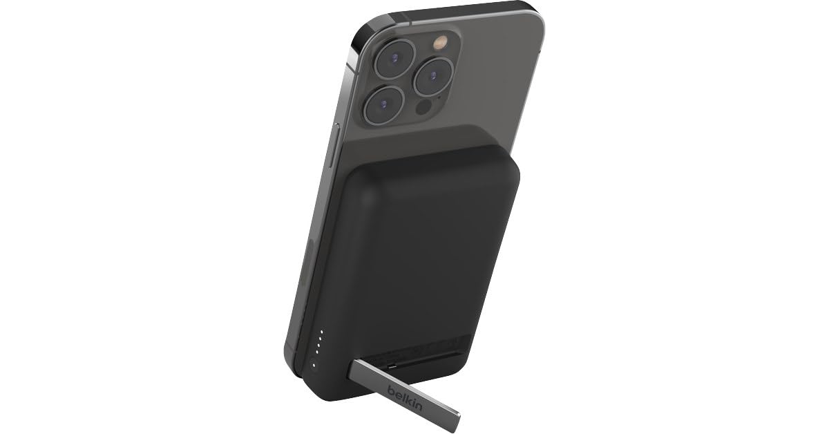 Belkin 5000 mAh Magnetic MagSafe Wireless Power Bank with Stand, Sleek Design for iPhone 15, 14, 13 and 12 Series, Compatible with MagSafe Covers