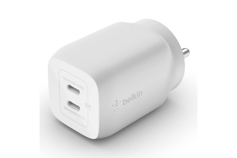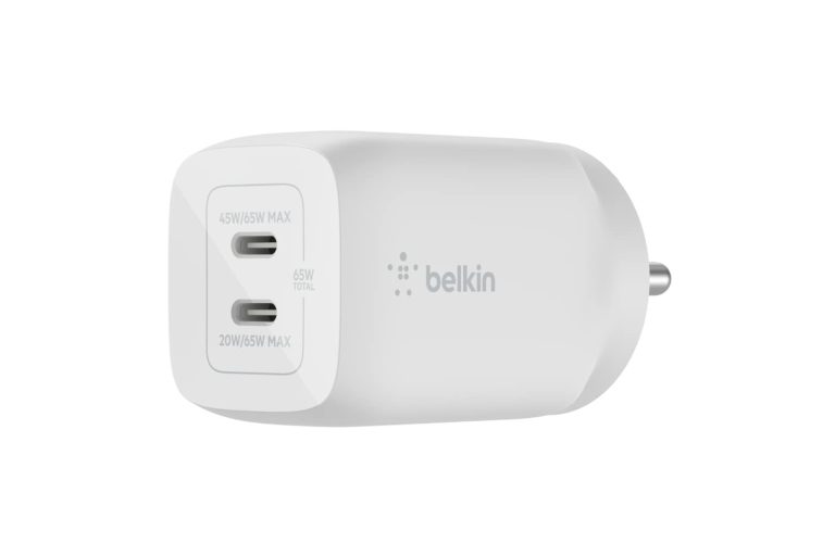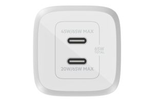 Belkin 65W GaN Dual USB-C (Type C) PD 3.0 Fast Charger with Pps Technology, Compact Size for iPhone 15, 14, 13, 12, MacBook Pro, MacBook Air, Ipad & Other USB-C Supported Devices – White