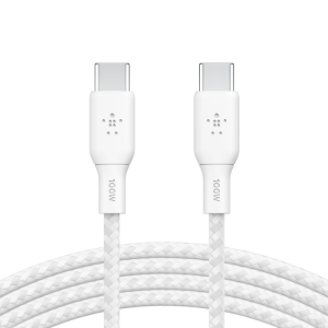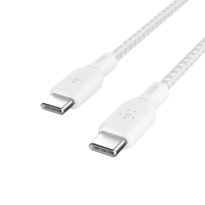 Belkin USB-C to USB-C Braided 9.9 feet (3 meters) 100W PD, Fast Charge and Sync Type C Cable for iPhone 15 Series, Macbook, USB-C Laptops, other USB-C Devices, USB-IF certified – White(CAB014bt3MWH)