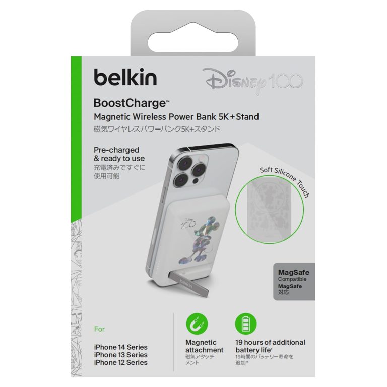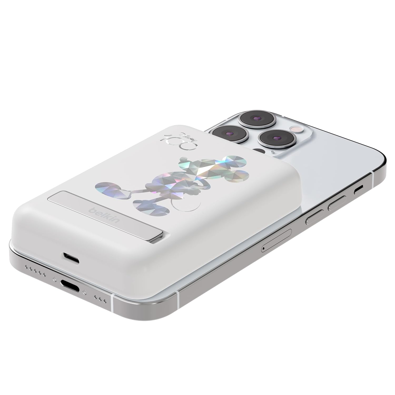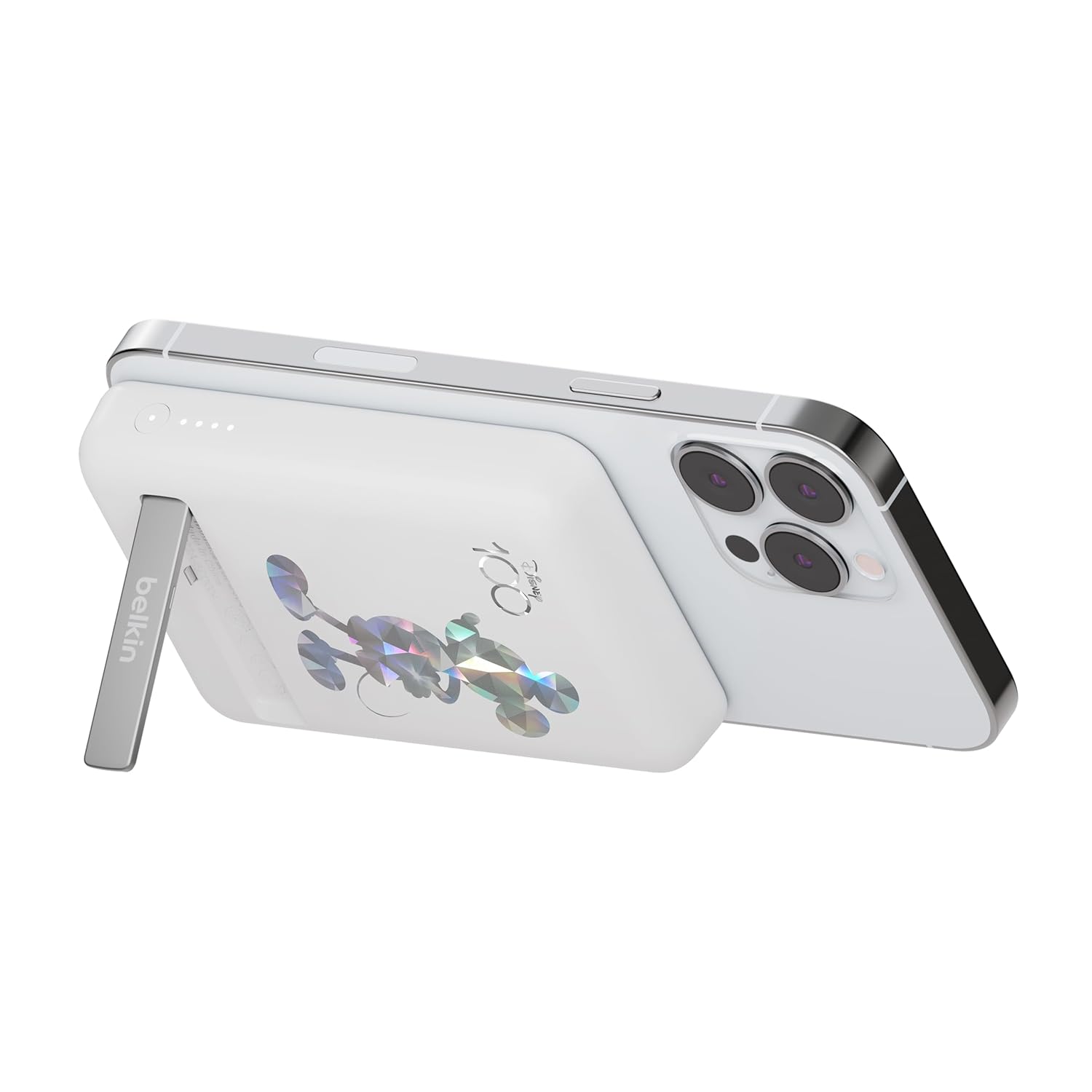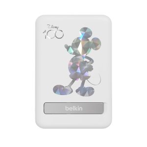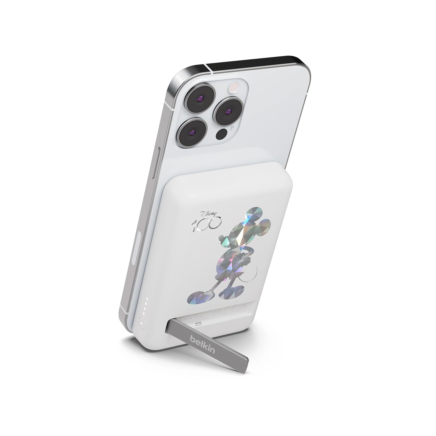 Belkin X Disney, Special Disney 100 Mickey Edition, 5K MaH Magnetic MagSafe Compatible Wireless Power Bank with Stand, Sleek Design, Compatible with MagSafe Covers – Silver
