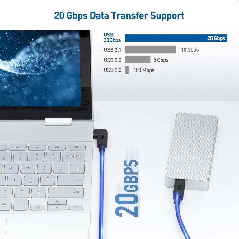 - Ultra-Fast 20Gbps Data Transfer: Experience lightning-fast data transfer with our 20Gbps USB C cable 90-degree. This USB-C right-angle cable is designed for rapid transfer of large files and video data, making it a powerhouse for efficiency and productivity