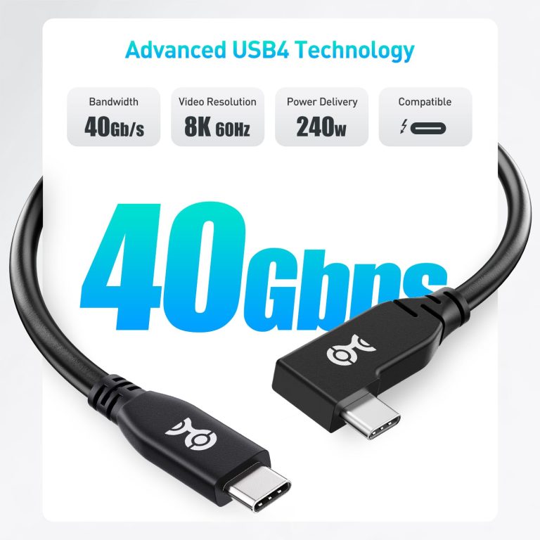 Cable Matters 40Gbps Right Angle USB 4 Cable 3.3 ft, Support 8K@60Hz Video, 240W Charging, USB4 Cable Right Angle/USB C Display Cable, Compatible with Thunderbolt 4, MacBook, XPS, Surface Pro