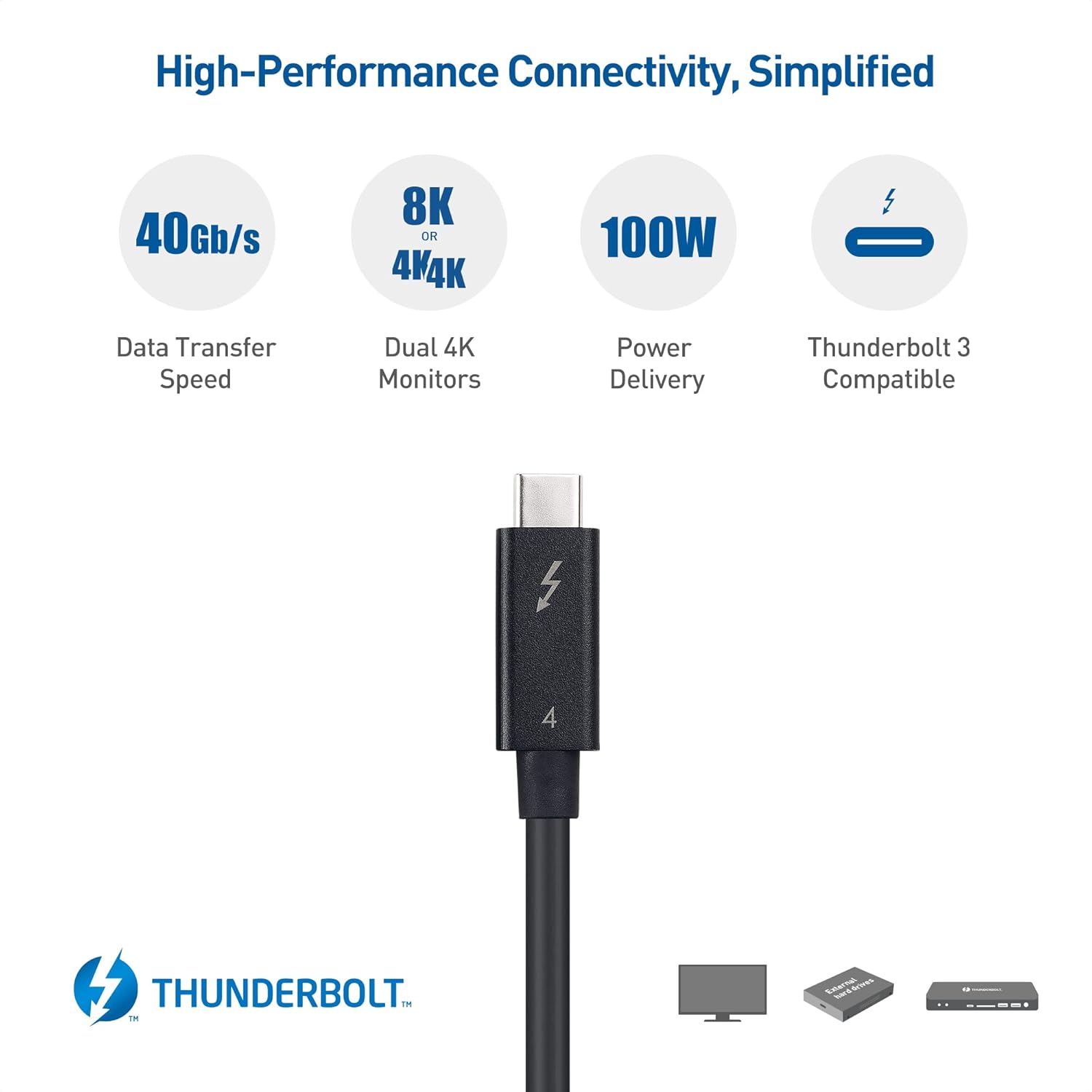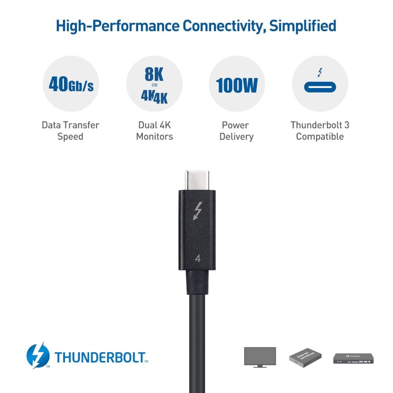 - Thunderbolt 4 simplifies the Thunderbolt ecosystem with guaranteed performance across all Thunderbolt 4-compliant devices and cables