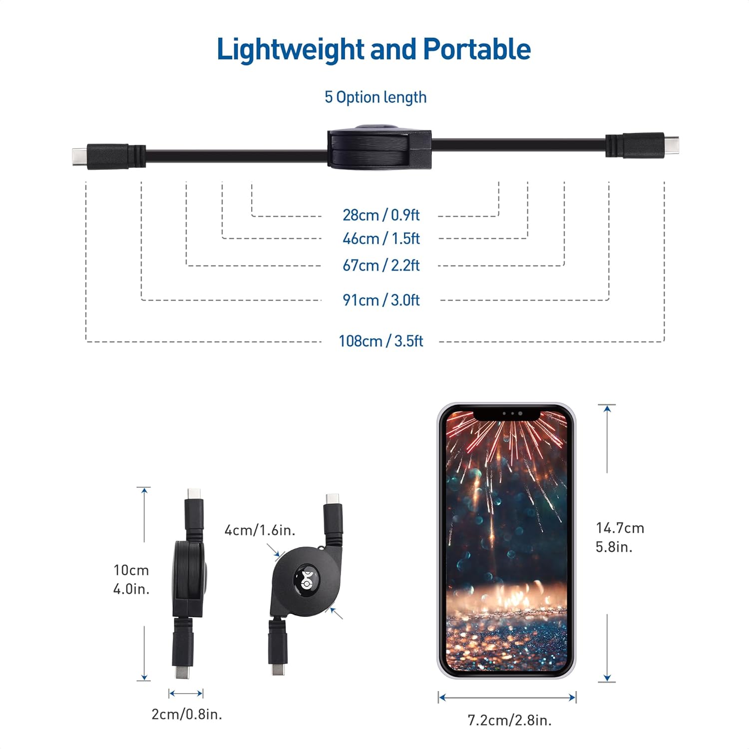 - Tangle-free retractable USB C charging cable features a compact wind-up design which adjusts to the perfect length for USB-C phone charging cable, tablet charging cable, and other USB peripherals; Easy and convenient retractable USB Type C cable fast charging is perfect for carrying in a pocket, pocketbook, backpack, or briefcase