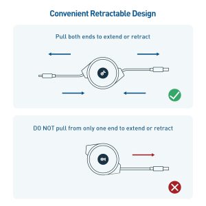 - Durable construction of the retractable USBC cable features gold-plated connectors, molded strain relief, and an innovative ratchet function for reliable performance; Supports Hi-Speed USB 2.0 data transfer up to 480Mbps as a USBC data cable and up to 60W Power Delivery charging as a USBC charger cable
