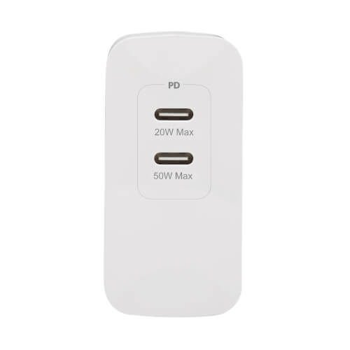 Travel-sized USB-C charger provides up to 70W to charge your laptop and smartphone quickly and efficiently at home or on the move.