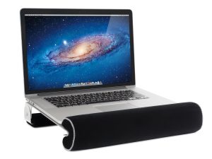 RainDesign’s iLap LAP/Desk Stand for 15″ Powerbooks is made to keep you and your laptop cool. Use it on your desk to prevent overheating your motherboard, or use it on your own lap, when away from a desk to keep both you and your laptop cool. The light aluminum structure and thick pads at front and back let you work comfortably in many locations with equal ease. Originally designed to match the Apple MacBook Pro and Powerbooks, iLap is equally suitable for other 15″ laptops as well. Its sand-blasted aluminum with silver anodized finish complements any model. iLap comes in other sizes as well: 12″, 14″, 15″ widescreen and 17″ widescreen versions.