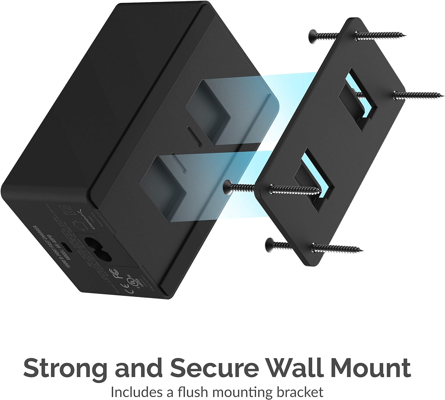- Stand-alone charger. It does not require a computer to work, only electricity. Includes a flush mounting bracket.