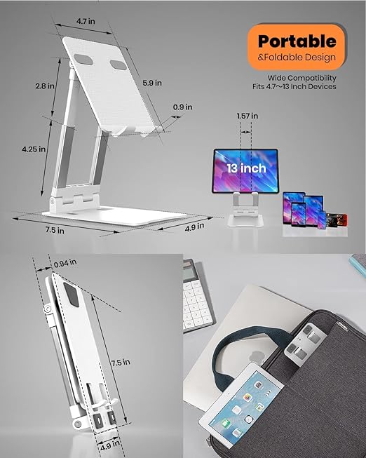 - Wide Compatibility : the portable tablet phone stand is designed for 4.7″-12.9″ tablets and smartphones.