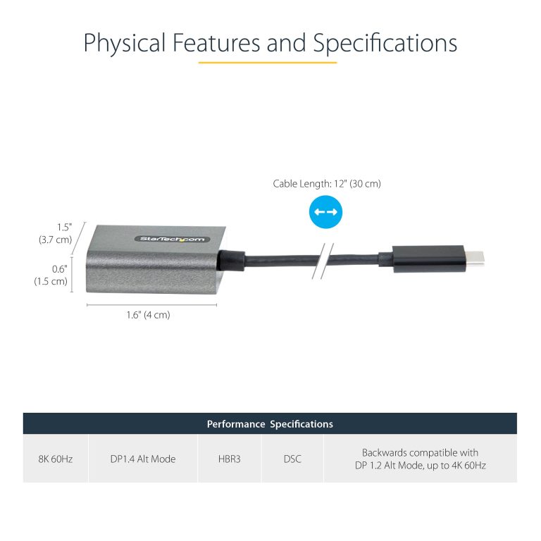 The DP 1.4 adapter is backward compatible with 1080p displays, which makes it a great accessory for home, office or other workspace applications while future-proofing for 8K implementation.