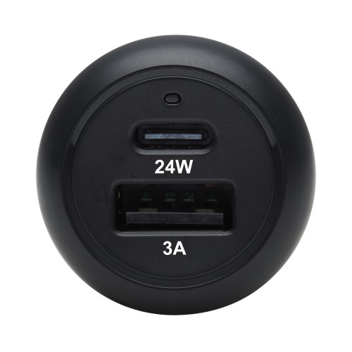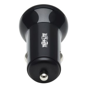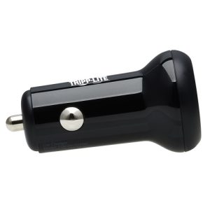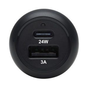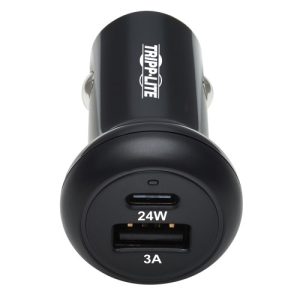 Tripp Lite Dual-Port USB Car Charger with 24W Charging – USB-C (24W) PD 3.0, USB-A (24W) QC 3.0, Black