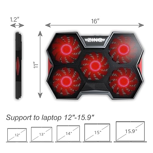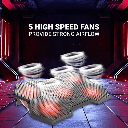 Zinq Technologies Five Fan Cooling Pad and Laptop Stand with Dual Height Adjustment and Dual USB Port Extension (Black)
